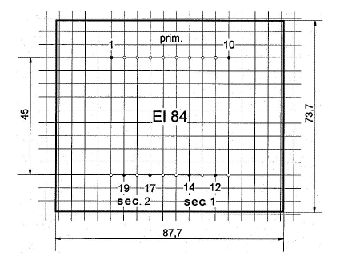 EI84-13F/7.../... 70°C/B 6...40V - 85.00 VA 2x6...20V - 2x42.5 VA bkf 29.5 63.4 1,680